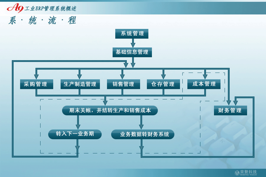 A9工業ERP管理系統是在充分研究企業管理方式、業務流程、數據信息需求的基礎上,整合國際先進管理理念,研制而成的全新ERP管理系統。本系統包括采購管理系統、生產制造管理系統、銷售管理系統、成本管理系統、財務管理系統、倉存管理系統、基礎信息管理系統等七大子系統。